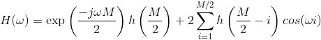 # H(w) = exp(-jw M/2){ h[M/2] + 2 * sum(i: (1, M/2), h(M/2 - i).cos(wi) ) }