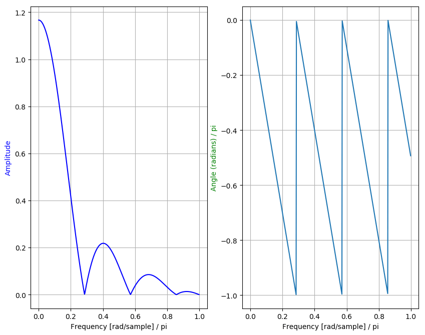 We have use python’s signal.tf2zp to plot signals. Also the frequency response is shown from 0 to pi. We have not shown how to design such filters, This will be covered in upcoming articles.