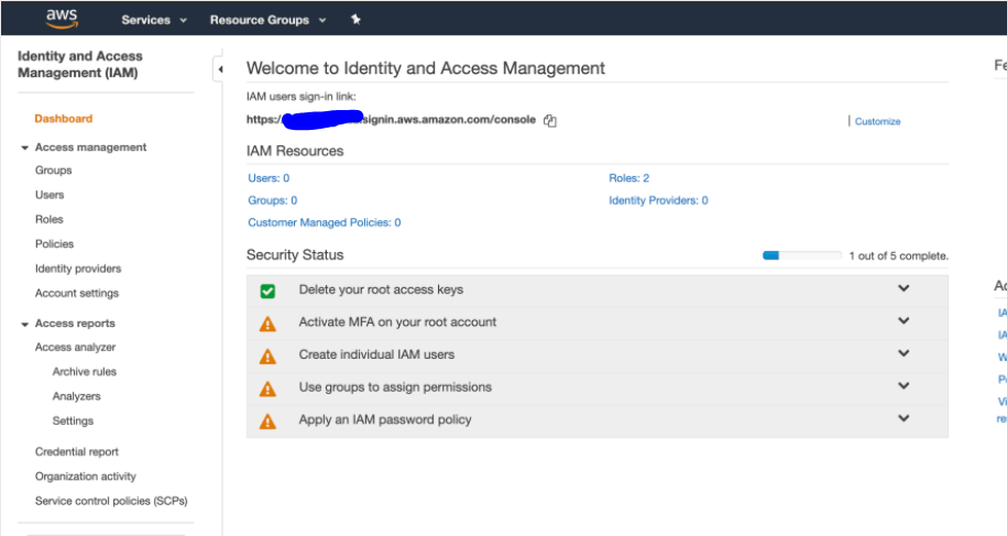 You should be able to see IAM Dashboard as shown below.