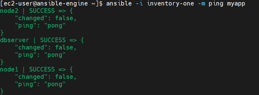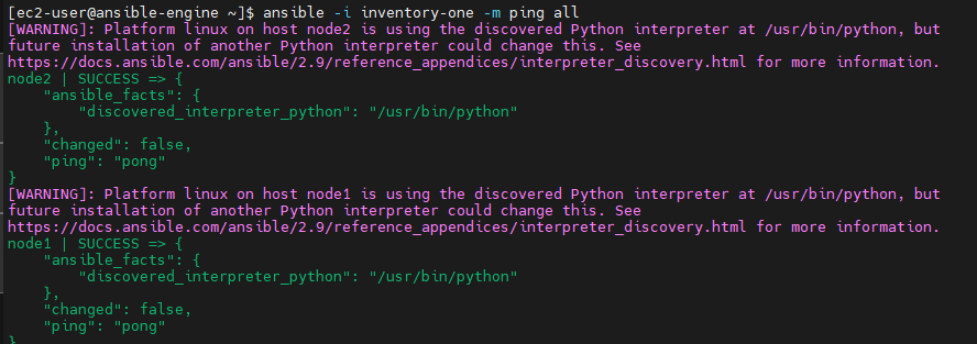 – uncommentedHost_key_checking = False -m ping node1works now.{ping : pong}