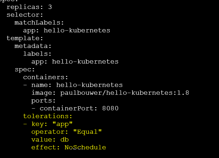 Now Since we are clear with Taint, let’s see how do we put toleration on nodes so that it can be scheduled on the tainted node.