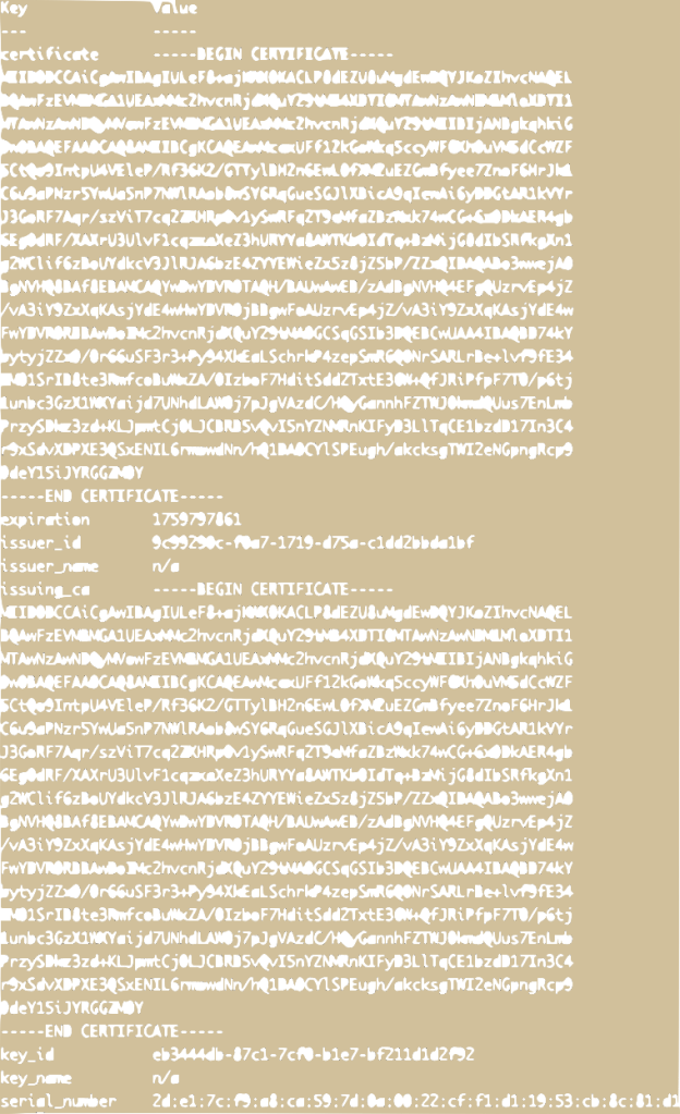 server_cert.jsonfile. - ca.pem: This is the root CA certificate you retrieved previously.