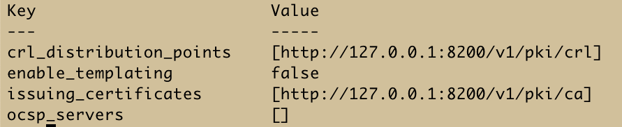 issuing_certificates="http://127.0.0.1:8200/v1/pki/ca" \