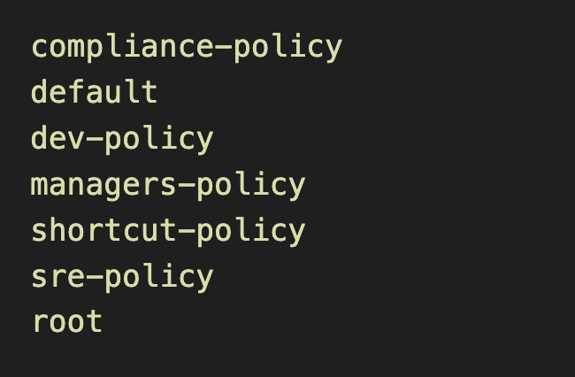 2. Confirm that all policies for these roles have been fully established by running the command: