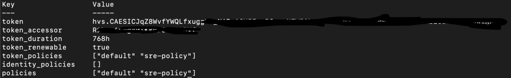 Because the SRE policy restricts reading or writing secrets beyond the kv/sre/* path, the SRE token cannot access any development secrets.