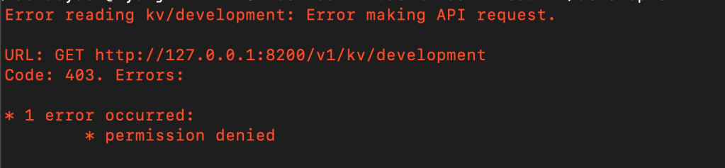 Given that your development role token is authorized for the kv/development path, you should encounter no problems when saving the secret.